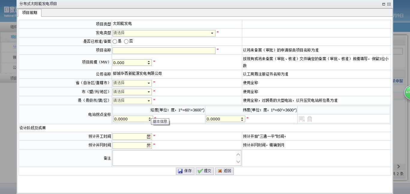 下面,图文并茂,简要介绍如何录入可再生能源发电项目信息管理系统。